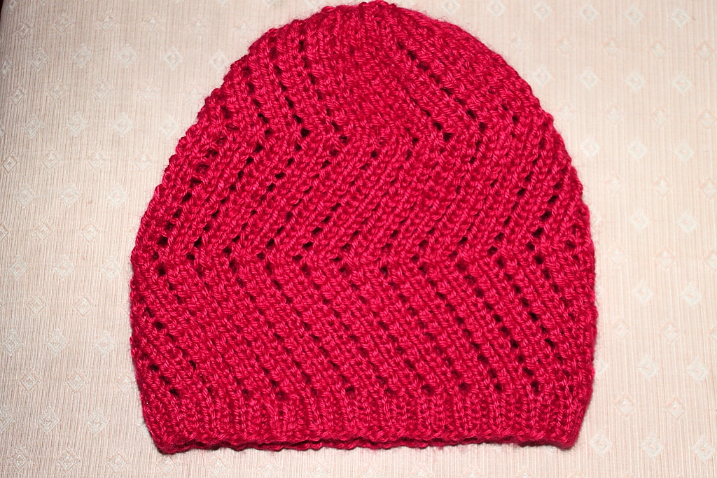 tada~~成品如上。從下而上依序可以看到brim ribbing、向左斜的蕾絲、向右斜的蕾絲、向左斜的蕾絲。