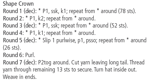 織到這裡全部還是104針。以下開始shape down,讓帽緣開始縮小。