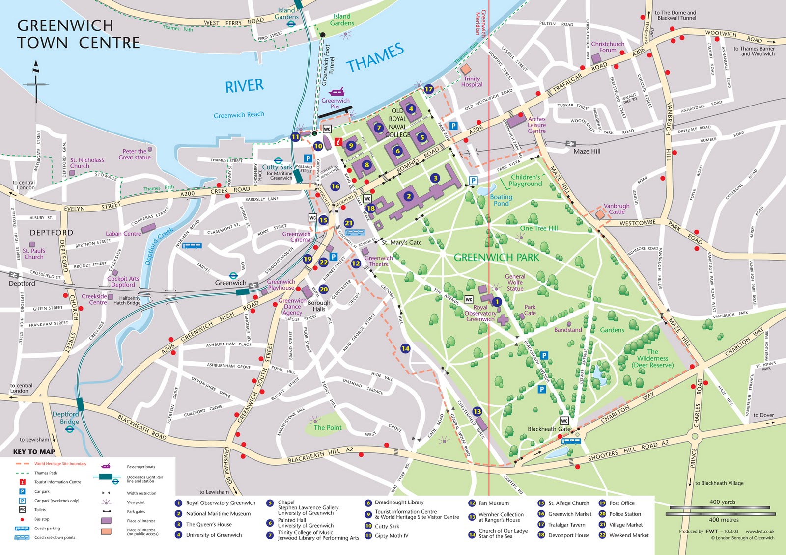 Map of Greenwich。格林威治又叫作綠色的城市,果然這張地圖裡面綠色的部份佔了大半。