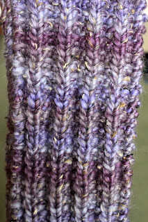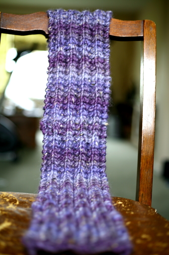 好吧,除了紫色、灰色、黑色、白色以外似乎還有靛青色......相較於那些五顏六色的圍巾需要買許多不同顏色的毛線球,這個毛線球本身就具有這麼多個顏色,而且出現在圍巾上面的位置又非常整齊。