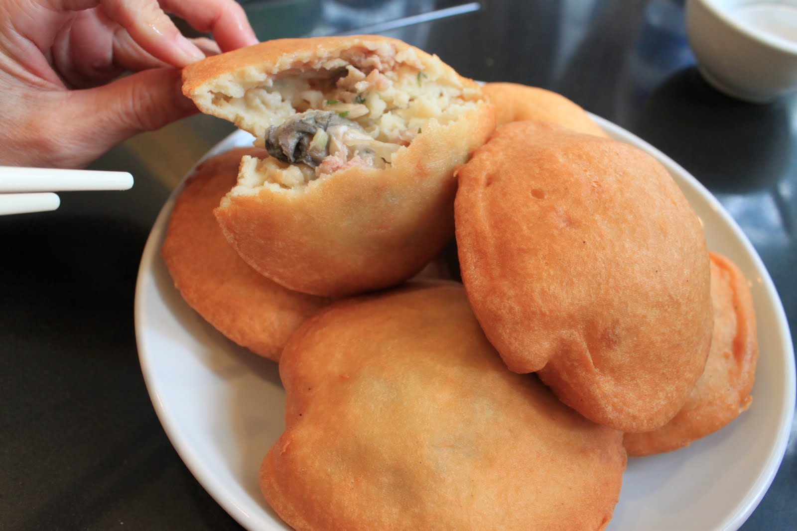 蠣餅----外皮是由大米和黃豆磨成漿,包上牡蠣、豬肉、芹菜入鍋油炸而成,相當好吃。