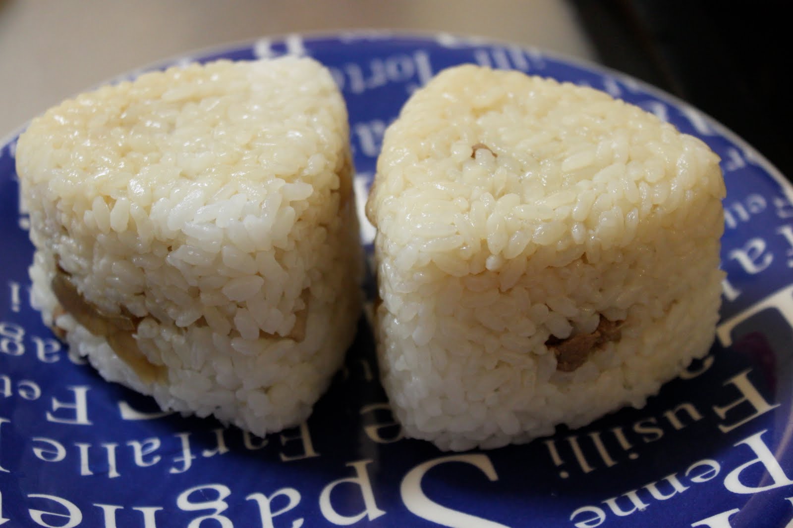 其實我發現如果拿隔夜剩飯來包的話,比較沒有彈性,還是當天現煮的米比較好。還有我如果做飯糰一定是要外帶的,所以我都會用保鮮膜包起來,所以不會掉滿地啦^^