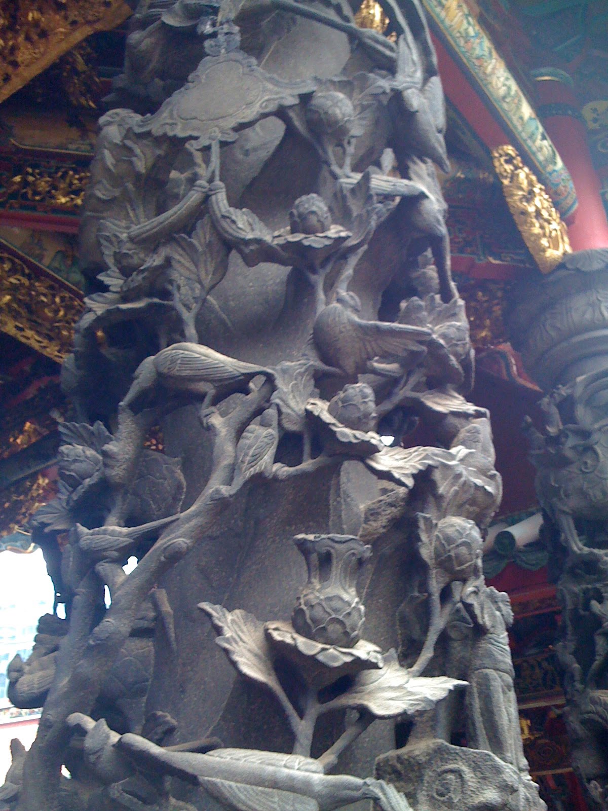 (銅雕龍柱って、台湾唯一的銅製の龍柱ので、すごい工芸だ。)