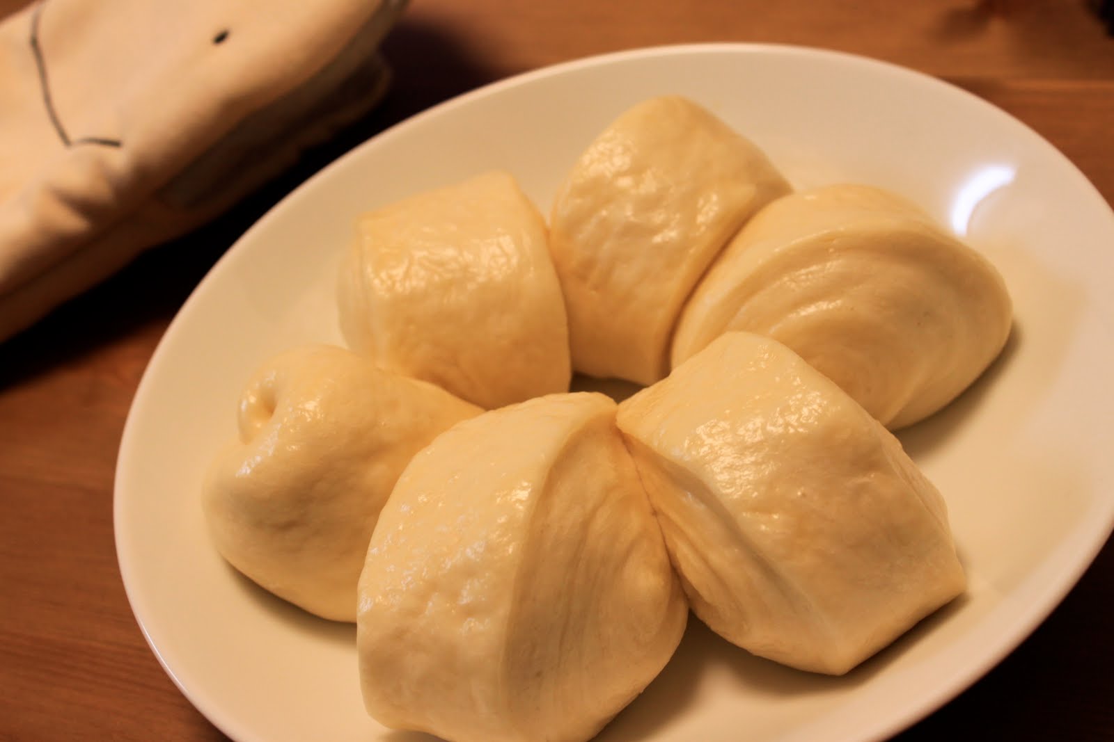 (→因為沒有蒸籠,只好用大同電鍋代替。因為天氣冷,所以我先將電鍋的水加熱後又讓它冷卻了一點,幫助發酵。發酵完後,用手指輕壓,可以發現麵團上的痕跡恢復地較慢,而且麵團比發酵前還軟)