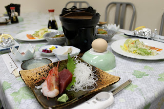 到達山中湖巴士車站後,我馬上打電話請民宿開車來接我們。沒想到來接我們的人竟然就是網路上看到的喜歡玩相機的女將!這位女將是個大約六十幾歲的老太太,晚餐後我們還應她的邀請參加晚上花之都公園裡的煙火活動(兼充當她的三個小孫女的臨時保姆)。雖然這個民宿外表並不起眼,可是我們在這裡感受到前所未有的人情味。首先我要表揚這家民宿的食物一番。以前我們每次出遊住旅館時,旅館的人員因為客人多,並不會特別招呼我們,我們在旅館吃的餐點雖然說是溫泉餐,旅館的服務生一件一件菜餚放在桌上要放個五分鐘才放完,食物、醬料和大大小小的盤子林林總總擺滿了一桌,但是生魚片是從冷凍庫直接拿出來的,冰冰硬硬的還沒有解凍。炸物也炸完很久了,炸皮的部份早就軟掉溼掉了。除了白飯和味噌湯是熱的以外,其他的東西都像是放了很久的樣子,看起來一點都不新鮮,一整個看起來很隨便,叫人提不起食欲。然而這家民宿的做法讓我覺得很意外。我本來以為端上來的大概又是早就做好的食物了吧,結果炸魚是現炸的,酥酥脆脆吃起來很爽口。生魚片吃起來很新鮮,生蝦子吃起來也很甜。包在錫箔紙裡的鱈魚配上洋蔥和菇類更是讚不絕口。東西是現做好才一樣一樣端上來的。沒想到只是這樣簡單的要求,絕大部份的旅館都沒有辦法做到。不知道是不是覺得要一次把所有的菜都排滿整個桌子的這種陣仗比較好看,反而忽略了食物新鮮度的重要性?