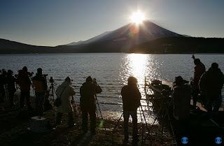 邊吃晚餐時,女將還把過去她上過的介紹富士山的節目錄影帶拿出來給客人看。原來當太陽快要下山時,太陽剛好落在富士山山頂的情形叫做diamond fuji,然而這個情況並不常見,如果要來看diamond fuji,最好要在一月、二月最冷的時候(但天空最晴朗時)來。節目上的那幾個富士山迷甚至還在富士山前站崗站了五小時,才能拍到diamond fuji。