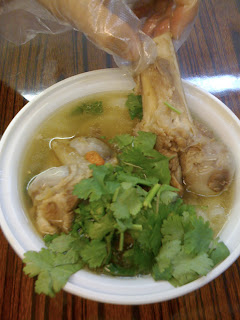 之前介紹過(文章見這裡),一定得去的是Flushing黃金商場地下室的溫州朱記。雖然這黃金商場看起來很不起眼,又看起來不是很乾淨的樣子,不過難得在紐約吃到好吃的溫州菜,就睜一隻眼閉一隻眼囉,何況溫州朱記還是裡面最乾淨的一家。我最常點的是骨頭錦粉麵、麥餅兒、煎餃/錦粉餃。骨頭錦粉麵的湯是由大豬骨頭熬成的中藥湯,碗裡慣例都有兩個大骨頭,老闆會很親切地提供塑膠袋手套供客人拿起骨頭啃,及吸管讓客人吸食骨髓。錦粉麵是由地瓜粉作成的麵,像粿條一樣透明軟Q。麥餅兒裡面包的是碎豬肉及酸菜,錦粉餃是由地瓜粉作成的餃子皮,相當軟Q。說起來我每次來都會換點不一樣的東西,每樣吃起來都很特別。最後一個點的是溫州餛飩湯,心想反正台北也吃得到,所以大約來這裡第五次才想來點點看。沒想到連餛飩都很特別,有別於台北吃到的大粒餛飩,這裡的餛飩反而比較小,但吃起來很有嚼勁。老闆並不是很熱衷做生意,再加上店的位置藏在地下室最裡面,客人並不多,但老闆每次看到我來時總喊著“啊,這是老客人啦“的溫情及平實的小菜(還有平實的價錢),是讓我一再光顧的原因。