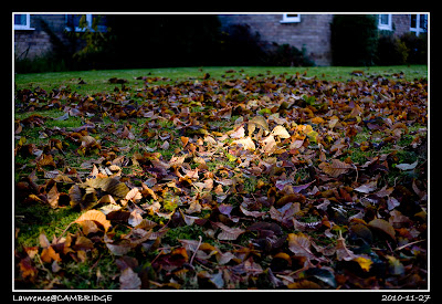 我們家公寓外面的草地鋪滿了落葉。