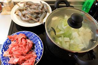 因為有了去年在京都八坂神社倒數時人擠人又冷到爆的前車之鑑,今年的過年我們只想懶洋洋在家吃火鍋看紅白大對抗。為了儲存糧食好過年,我們在年底前幾天就先跑到上野阿美橫丁,想買點什麼好康的犒賞自己。因為阿美橫丁賣的東西相對比較便宜,平常就已經吸引很多人潮的阿美橫丁在年底前更是擠滿了來採購年貨的人群,整條街都擠得水洩不通,寸步難行。雖然嘴饞很想吃台灣的貢丸魚餃蝦餃之類的火鍋料,但這裡台灣的物資缺乏,買得到的只有貢丸,而且一小包就要日幣900円,相當不划算,於是最後只有買了一盒70隻的蝦子(1000円)、本たらかに大螃蟹的四隻腳(2000円)。在日本還是來個海鮮火鍋比較實在。